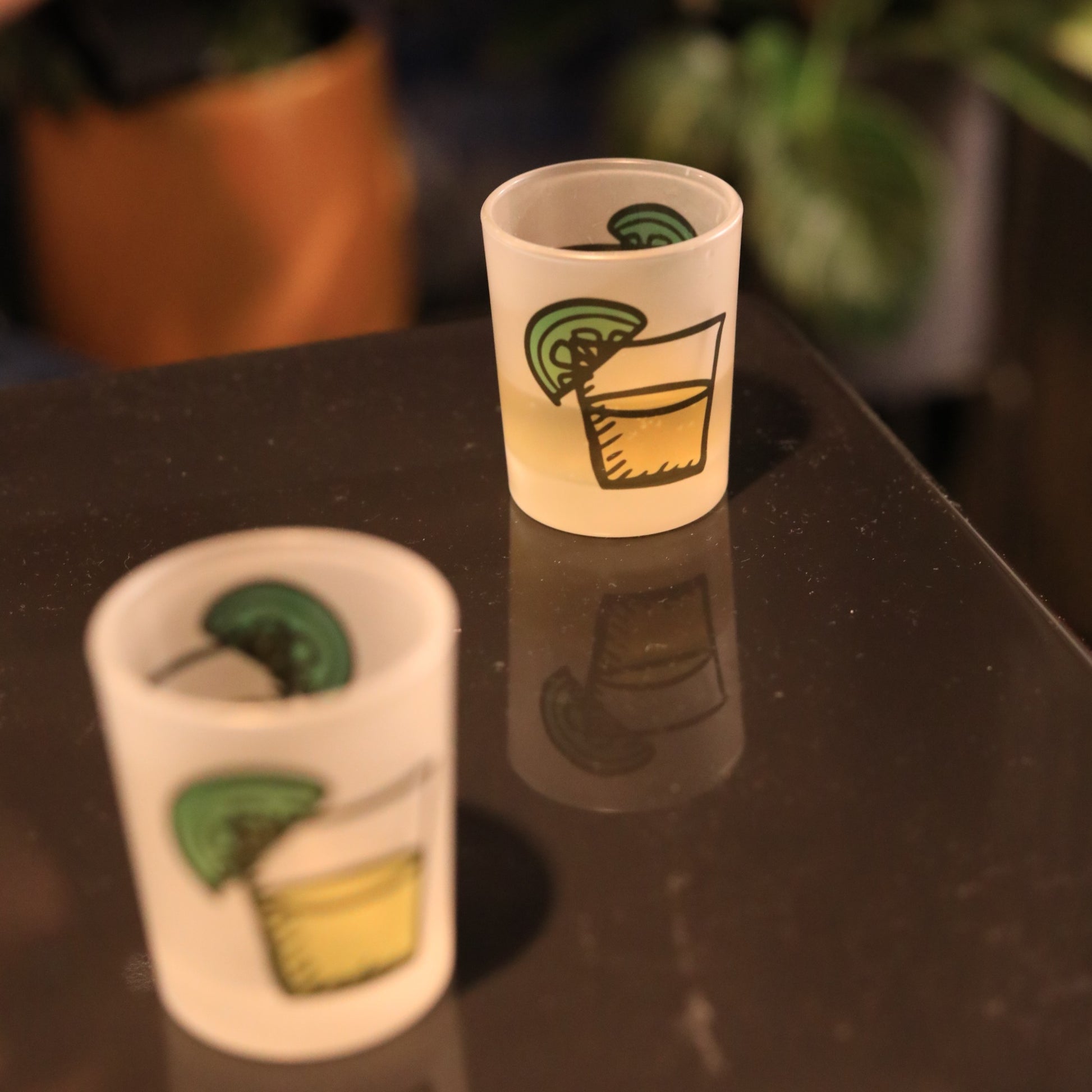 ・グラスの仕上げには繊細なフロスト加工が施されており、シックで統一感のあるデザインをご提供。プリントは丈夫で長持ち。色は鮮やかで明るく、フロストマットコーティングを施すことで、モダンでエッジの効いたショットグラスに仕上げております。